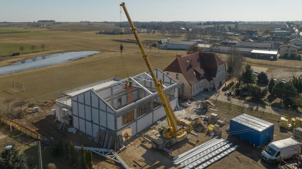 Sala gimnastyczna powstająca w Zalesiu nabiera kształtu. Jak informuje gmina Brusy, rozpoczął się montaż konstrukcji dachowej Prace mają być zakończone jeszcze w tym roku. Jak ocenia burmistrz Brus Witold Ossowski, uroczyste otwarcie odbędzie się na początku roku szkolnego. – Wcześniej wykonano ściany fundamentowe, ściany budynku, strop żelbetowy i ściany kolankowe, co w kolejności umożliwiło przejście […]