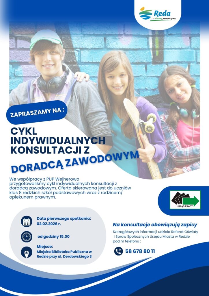 W Redzie chcą pomóc ósmoklasistom w podjęciu decyzji o dalszej ścieżce kształcenia. Miasto we współpracy z Powiatowym Urzędem Pracy w Wejherowie organizuje dla nich cykl indywidualnych konsultacji z doradcą zawodowym Spotkania będą się odbywać raz w miesiącu w Miejskiej Bibliotece Publicznej w Redzie. Pierwszy termin to 2 lutego. Trzeba jednak wcześniej zgłosić chęć udziału. Wystarczy […]